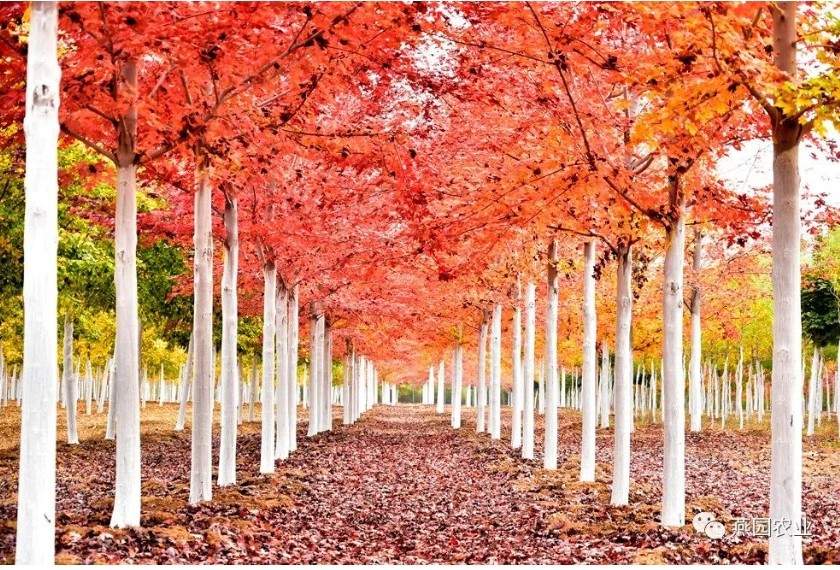 树体高大、树形挺拔、树皮光滑、树干笔直、生长较快、抗逆性强、成活率高、广受欢迎、秋叶火红,它就是美国红枫,国内彩色苗木中最受甲方喜爱的树种之一,常年“霸占”销量榜位。