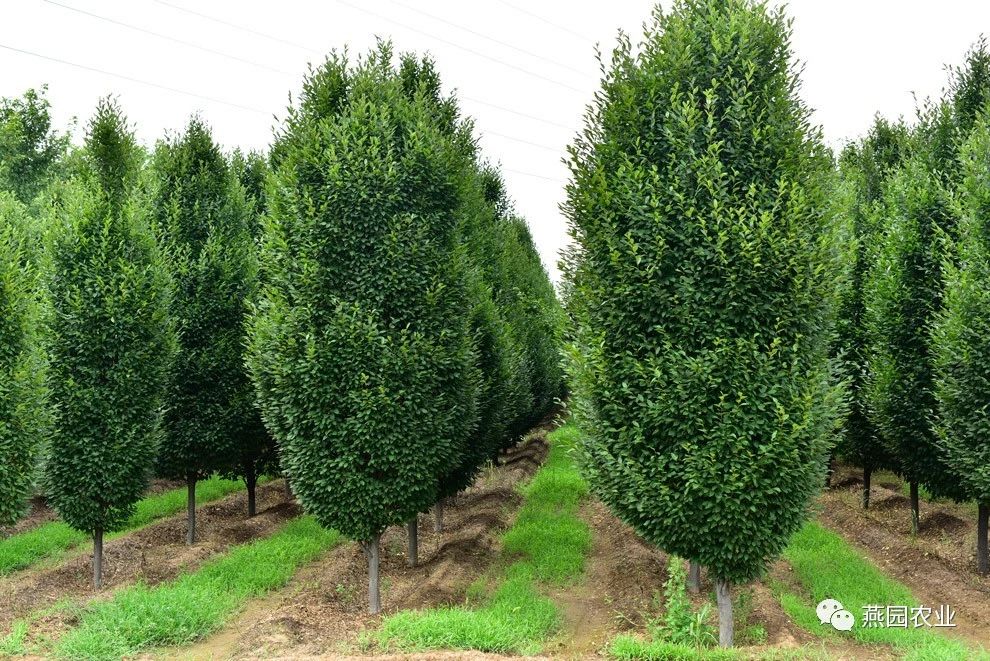 ①拉丁名:Carpinus betulus ②树形:树形匀称规整,枝叶紧凑,幼龄期为窄柱形,随树龄增长,自然呈椭圆形。 ③叶片:叶卵形,叶脉明显,夏叶深绿色,秋季变为金黄色。 ④适宜环境:对土壤的适应能力较强,喜微湿且排水良好的壤土或沙壤土,在PH值为6.5~8.5的范围内能正常生长,耐热性强。 ⑤适应区域:华东、华中及华北地区。 ⑥产品规格:D10~12CM,H550~600CM,P200~250CM。