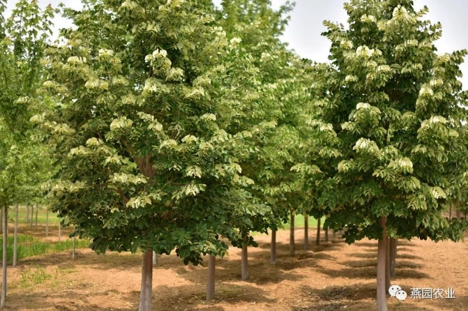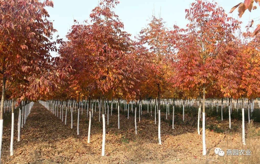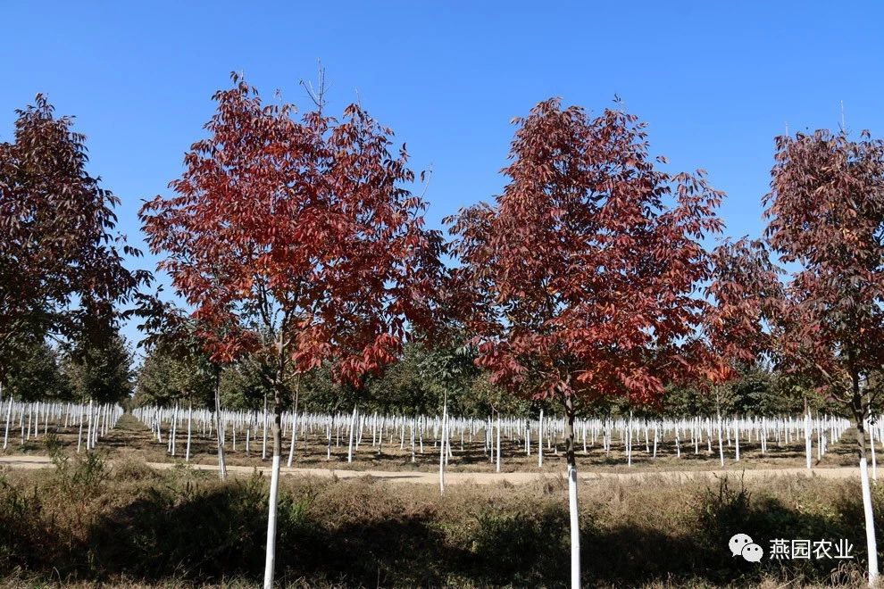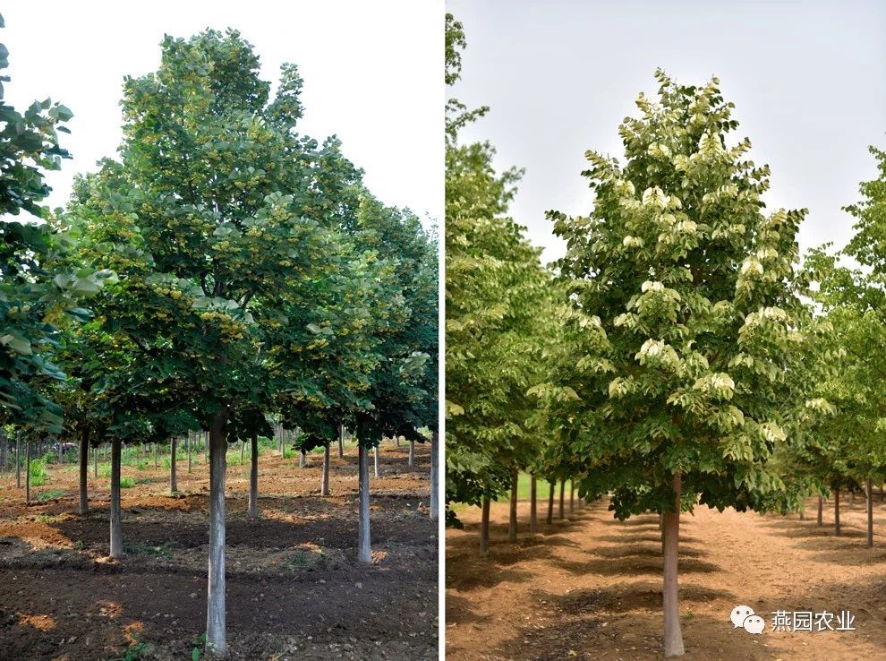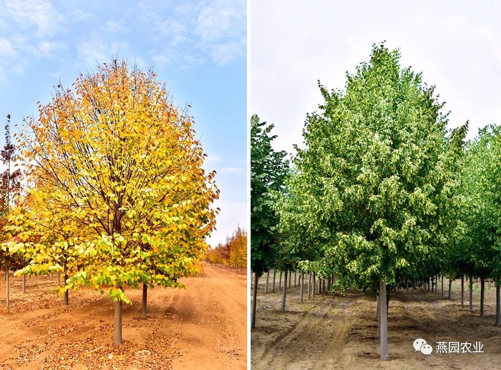 ①拉丁名:Acer negundo ‘sensation’ ②树形:树形为圆形,树干通直,冠大荫浓,树皮浅灰色,侧枝粗壮健硕。 ③叶片:春夏新叶微红,秋叶呈现出红、橙、黄等多种颜色,色彩绚烂。 ④生长特性:生长速度快,树势强劲,缓苗期短,适应性强。 ⑤适宜环境:喜光,对土质要求不严,耐盐碱,耐寒性强。 ⑥适应区域:东北、华北、华中地区。 ⑦产品规格:Φ8~10CM,H550~600CM,P250~300CM。 注:以上树种照片均拍摄于草莓视频入口在线观看农业泰安基地
