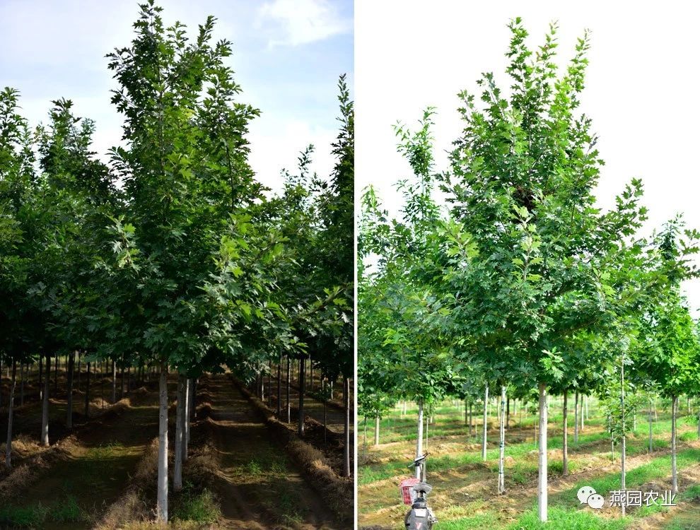 ①拉丁名:Quercus rubra ②树形:树形为圆形,树冠开阔。树皮灰棕色,有浅宽脊,老树树皮变为茶褐色。 ③叶片:叶互生,有7~9浅裂,长卵形至椭圆形,长12~24厘米,宽10~15厘米,叶片较大。新叶粉红色,覆有柔软的白色绒毛,老叶深绿色,光滑,叶上面有光泽,秋叶变为鲜红,冬叶变为棕褐色,有时枯而不落。 ④适宜环境:生长速度较快,能适应各种土壤和气候环境,更喜欢肥沃、湿润且排水良好的微酸性沙壤土。树龄可达500年左右。 ⑤适应区域:辽宁南部及以南地区。 ⑥产品规格:Φ8~10CM,H550~600CM,P250~300CM。