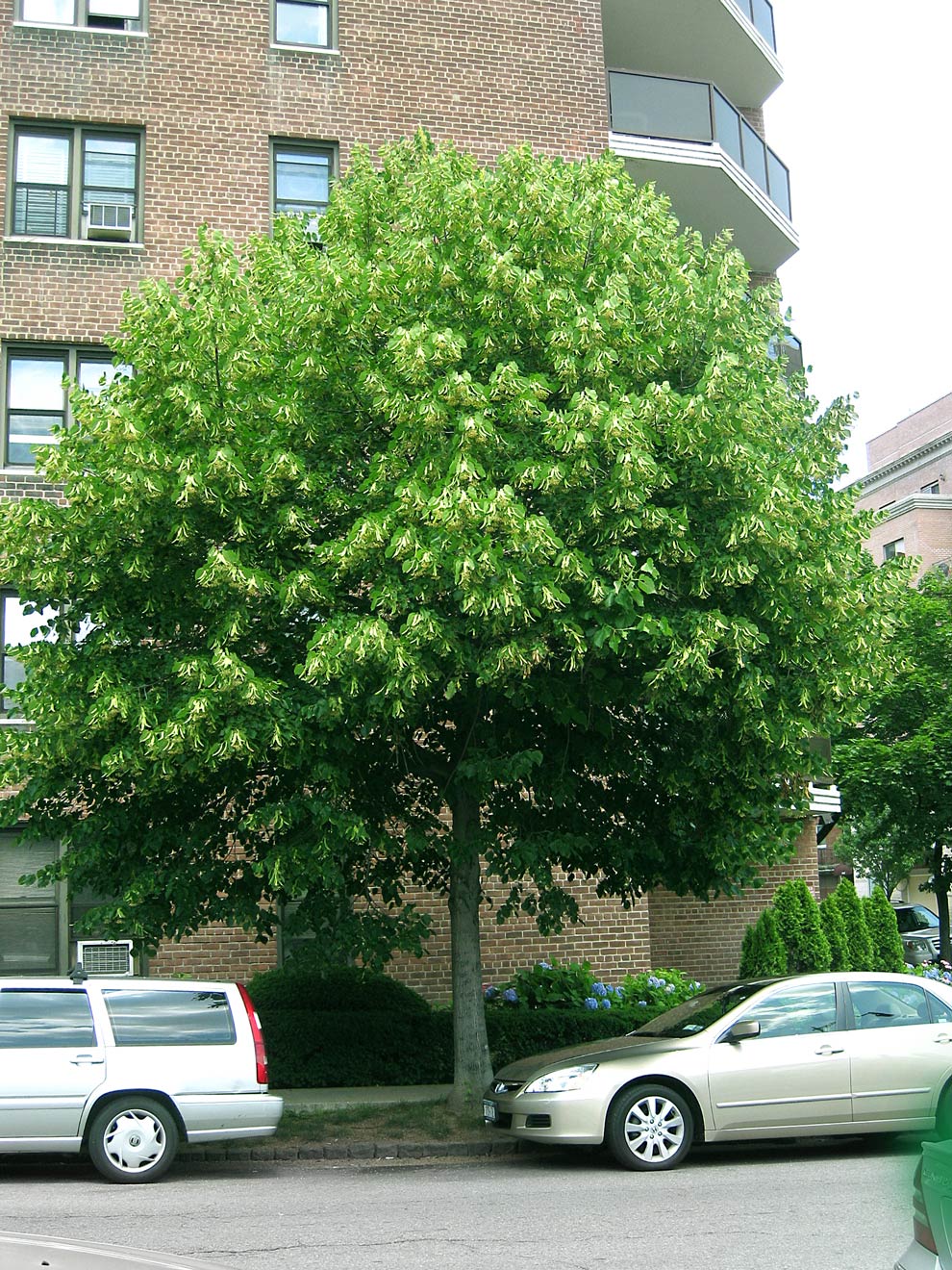 美洲椴有很多园艺品种,如非常耐修剪的‘新星’、树体高大的‘前庭’、窄柱形树冠的‘陆地’、还有大叶子的‘绿伞’等。