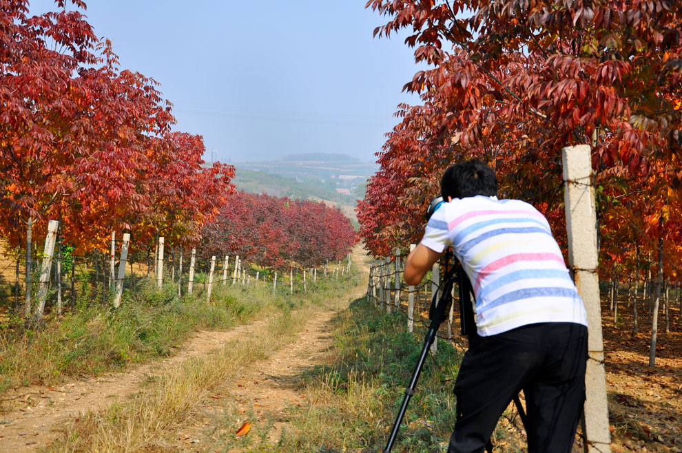 多彩草莓视频入口在线观看的第五处名树景点,树种为美国秋紫蜡。秋叶紫红色,色彩连绵不绝,浓淡相宜,似油画,如仙境,曲径通幽。浓浓紫韵,淡淡秋风。路旁两座秋山紫,万千树叶映斜阳。
