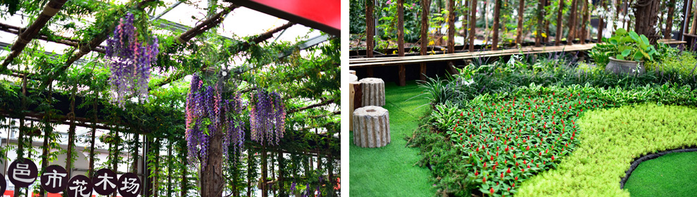 4/富有新意的展位设计 往年绿博会的展会谈不上设计,多数是一种平铺直叙的展示,或者奢侈夸张的搭建,今年几家展位的设计还是有些心意的,至少让人看到景观的搭配,植物的运用,这种真实的感受是非常关键的。国内一些苗木展会之所以半天就散了,主要原因还是展位缺少看点,这自然与参展商脱不开关系。苗木展会展览的主体自然是苗木,怎样将苗木最美的一面展示给观众,正是布展的主要任务。相信在未来,随着苗企实力扩大,资金积累,参展商必然能够百花齐放,各具特色,让展会有更多看点,两天三天甚至五天六天也看不够才最好。
